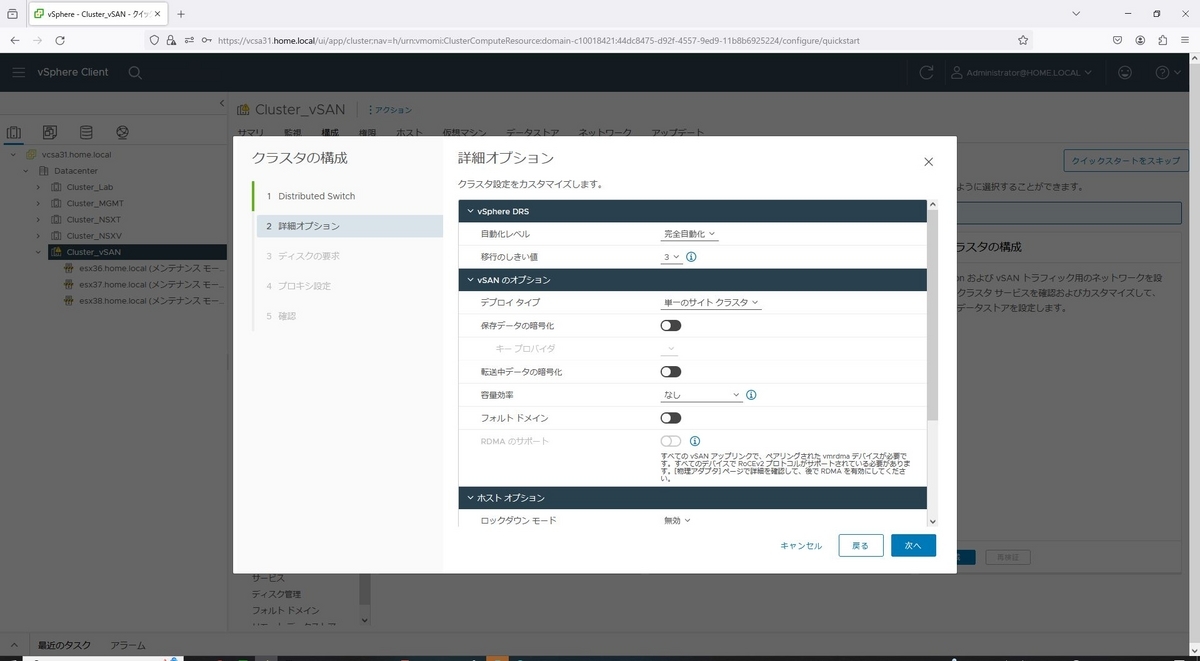 vSphere DRSとvSphere HAは必要に応じて有効にしてください。